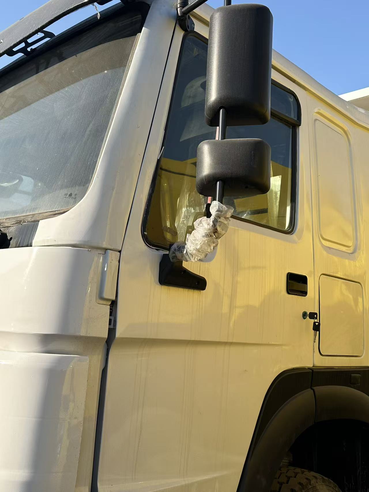 ◦ الجبهة الذهبية \" sinotruk \" ( CNHTC ) شعار اللغة الإنجليزية ، و \" 371 \" نموذج رقم يمثل قوة هذا النموذج 371 حصان ، هو كلاسيكي CNHTC الشاحنات الثقيلة السلطة المعايرة .